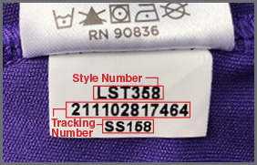 This tracking number is located on the tracking label, which is found directly underneath the fabric care label.